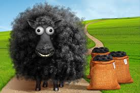 英文中“black sheep”败家子,有辱门楣的人。 很有可能是转变与18世纪的一句谚语: "There is a black sheep in every flock" 意思是每群白羊中必有一只黑色的。因为那时黑绵羊的棉不容染色,所以黑绵羊的价钱也比不上白羊的,当然就更不希望群中有一只黑色的了。而且,黑色在欧洲更是寓意魔鬼与不幸的颜色。