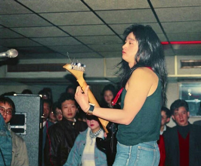 下图:高旗(左)与民谣歌手老狼(90年代初期)照