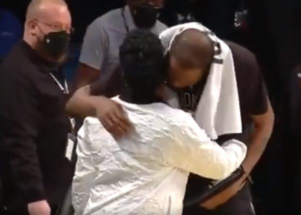 心情大好的杜兰特,在赛后也不忘谢谢妈妈,他径直的走向了过去拥抱这位伟大的母亲。