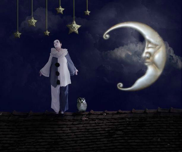 《月迷彼埃罗》是表现主义音乐大师勋伯格于1912年完成的室内性声乐套曲。其中包含21首女声咏念的歌曲,歌词取自1883年出版的比利时象征派诗人阿伯特·吉罗的朦胧组诗(在原50首诗中选用了21首)。诗中充满了精神恍惚的气氛,许多情节与其说是奇特的幻想不如说是潜意识深处臆断而真实的心灵写照。乐队由五人组成,分别演奏长笛(有时换用短笛)、单簧管兼低音单簧管、小提琴兼中提琴、大提琴、钢琴等八件乐器,但在每首乐曲中所用乐器不超过四件。彼埃罗原是意大利喜剧中的丑角、失恋者和被人取笑的对象。在这首作品中彼埃罗是诗人精神和意志的代言人,所表现的内容具有表现主义思潮特有的迷茫、恐惧、思维断裂、情绪扭曲等心理特征。