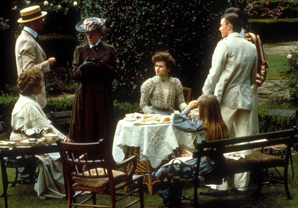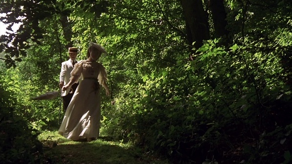 在一个安静的角落,两人倚着栏杆,第一次进行了私人间的对话。这场对话正是两人发现彼此心灵契合的开端。此后,乔治从不放弃任何一次向露西表达爱意的机会。