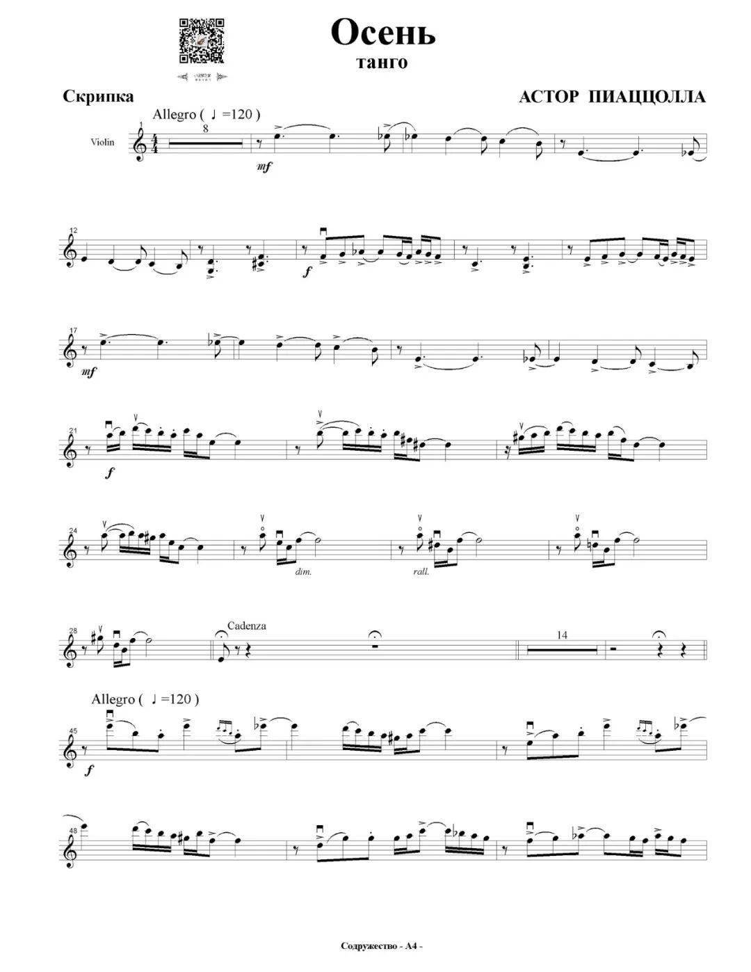 《布宜诺斯艾利斯的四季》中《秋》凌冽而忧郁,曲子时而低沉忧伤,像是讲述一段离别。时而激烈昂扬,像是一场热血沸腾的竞赛。《布宜诺斯艾利斯之秋》是一首非常怪异别出心裁的曲子,和其他三首非常不一样,中间风琴的部分用了大量的音阶上下行和装饰音,以及第一小提琴的连弓,第二小提琴的跳弓,曲子时而低沉忧伤,像是讲述一段离别,时而激烈上扬,像是一种冲破阻碍的革命。但到结尾处前的小提琴演奏却像极了一种喃喃自语,然后急转步入尾奏完全终止。