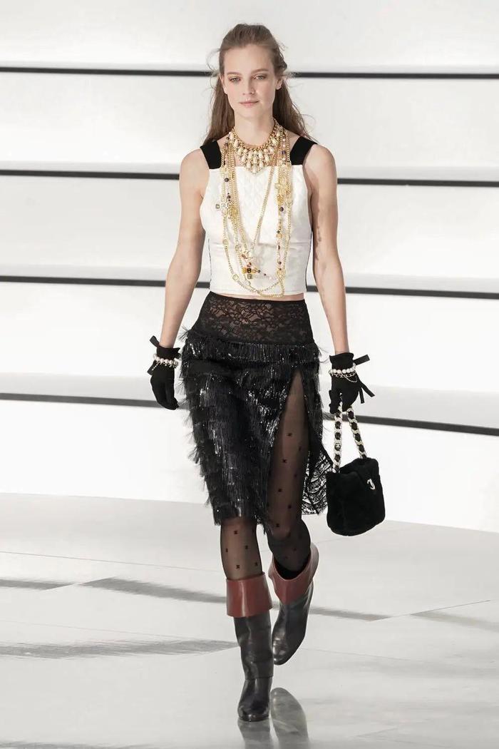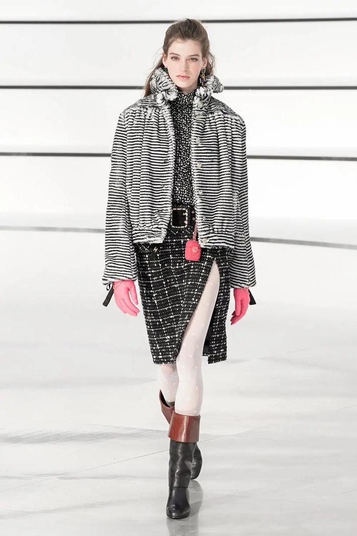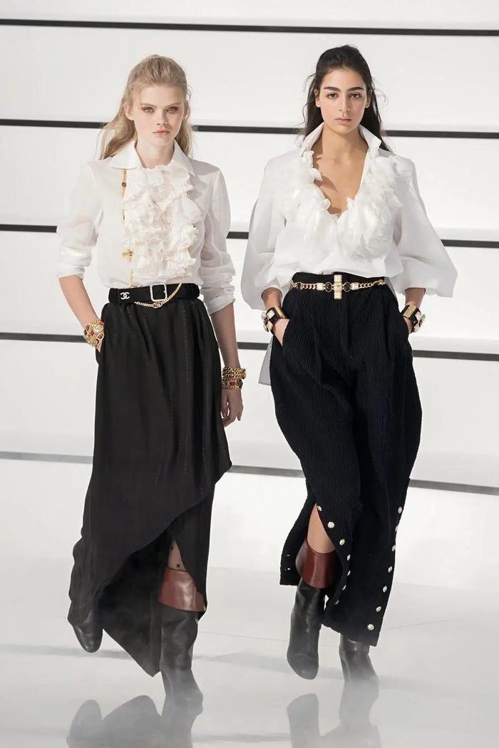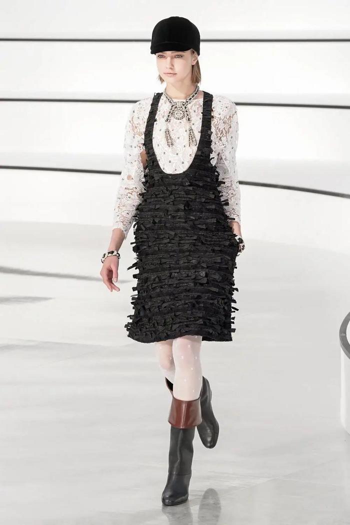 经典优雅是香奈儿永恒的主题。在本次秋冬大秀中,我们依然能在贯穿全场的黑白配中感受到: