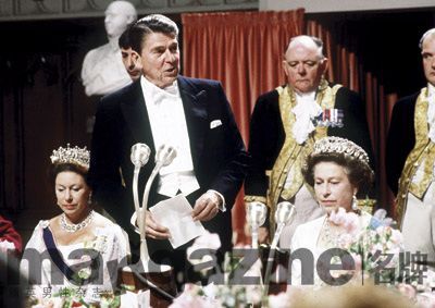 1982年6月7日,时任美国总统里根到访英国,受到女王伊丽莎白二世在温莎城堡的国宴招待