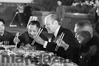 1975年12月4日,时任美国总统福特受到时任中国国务院副总理邓小平的设宴款待,宾主双方用筷子共进晚餐