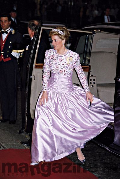 1989年3月,戴安娜王妃出访尼日利亚,当天赶赴国宴时,她身着Catherine Walker设计的礼服并佩带斯宾塞家族的冠状头饰