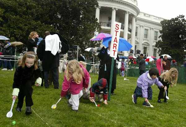图为每年复活节后的周一,美国总统府白宫都要举行“滚蛋”比赛。向民众开放,欢迎带孩子来玩...