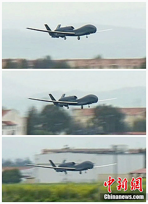 图为3月20日,美军全球鹰无人机在意大利的西西里岛空军基地起飞。