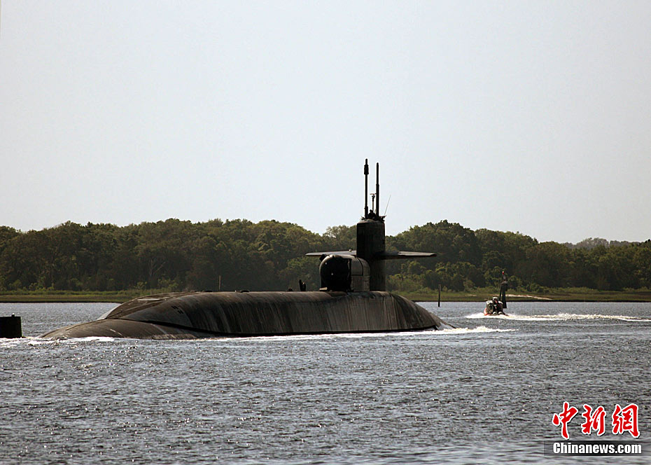 当地时间3月19日,美国海军已在地中海部署2艘核潜艇准备对利比亚发动军事行动,2艘潜艇分别是俄亥俄级佛罗里达号导弹核潜艇和洛杉矶级普罗维登斯号攻击核潜艇。图为2008年4月26日拍摄的佛罗里达号导弹核潜艇。