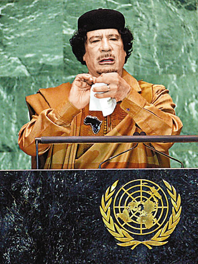 卡扎菲具有浓厚的民族主义思想,他热爱自己的民族和国家,他和其他的阿拉伯国家的民族主义者一样,对西方殖民主义者的种种罪行耳闻目睹,早在幼小的心灵中,种下了憎恨的种子,对阿拉伯民族主义的胜利也感到欢欣鼓舞。1956年埃及总统纳赛尔宣布苏伊士运河国有化,继而挫败了英、法、以联合发动的侵略战争;1958年,伊拉克民族主义者发动军事政变,推翻了费萨尔王朝,成立了伊拉克共和国;阿尔及利亚人民抗击法国殖民主义的民族解放战争,取得了节节胜利......这一切都使年轻的卡扎菲受到鼓舞,得到启发,阿拉伯民族主义的意识和感情在觉醒、在高涨,成为阿拉伯民族主义“大一统”思想和运动的坚决支持者。卡扎菲以纳赛尔为榜样,在他执政的第二年,就下令英国、美国、意大利撤出在利比亚的军事基地和军事人员,使利比亚人民扬眉吐气,精神振奋。