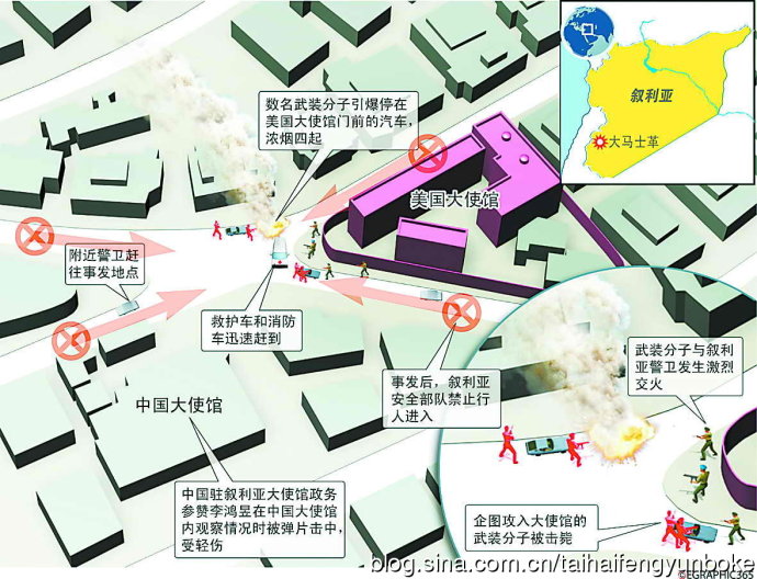 叙新闻中的感谢中俄的标语,对目前还在当地未必是个好事,巴沙尔支持者说好的必是反对派支持者心恶痛绝的。我们可以给巴沙尔留点信心就是暂不撤馆,但是在叙工作的中国公民就必须早做打算了,而且应该是目前中国在叙利亚问题上的首要任务。