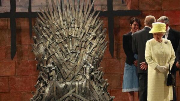 不过最近女王在她的第21次北爱尔兰之旅时,专门探访了《权利的游戏》的贝尔法斯特片场,于是不少人传言女王大人这是口味变重的节奏啊。。冰火粉请先不要傲娇,其实更靠谱的理解是,女王这次是去感谢人家拉动经济的,要知道《权利的游戏》为北爱尔兰带去了1.4亿美元的收入哦!不过在剧组人员邀请女王坐一坐铁王座的时候,她却拒绝了。内心潜台词应该是:“I used to rule the world.”