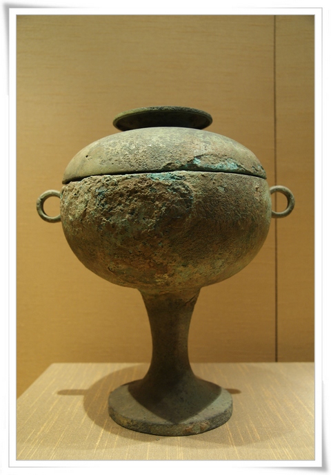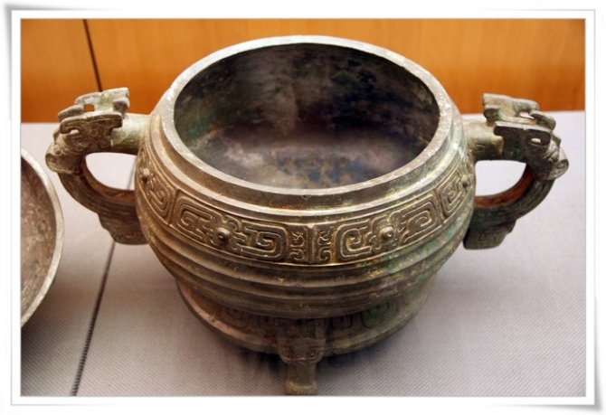 敦(dui,音对):盛黍、稷、稻、粱用。由鼎演变而来,形状酷似西瓜,又称西瓜敦或西瓜鼎。其上下内外皆圆,盖与器体合成球体或卵圆体,两环耳、三短足,盖也可反过来使用。