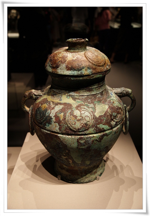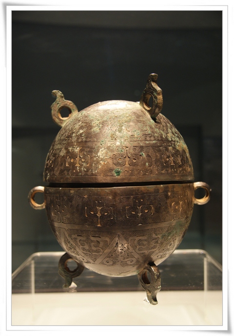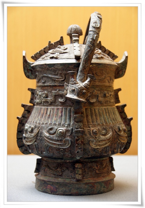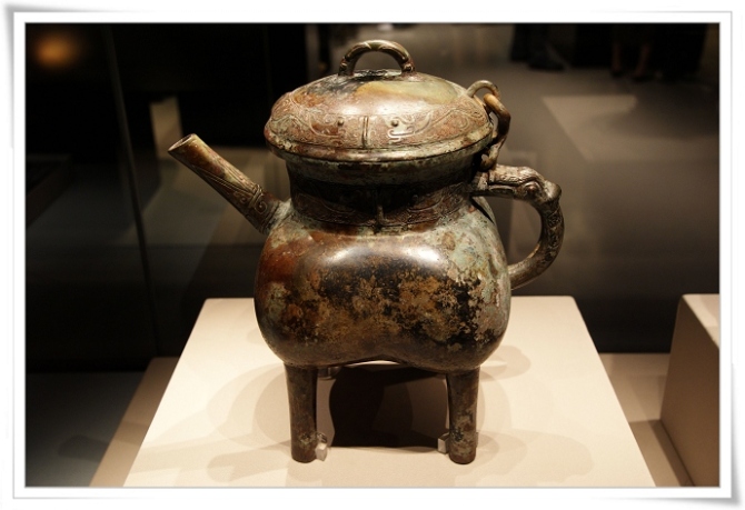 盉(he,音和):相当于今日的茶壶,是古代调和酒、水及温酒之器。《说文·皿部》:“盉,调味也”,故此器通过加入不同的水量可以调节酒味浓度的高低。一般是敛口、深腹、有盖、前有管状流、后有鋬,下有三足或四足。