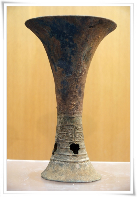 觚(gu,音姑):是最早出现的青铜饮酒器。上下均呈喇叭口状,中为长颈细腰。