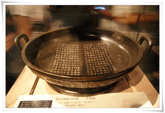 盘:盛水和古人盥洗时承接弃水的用具。形制为圆形,口大,圈足,腹浅而平,有的有耳,有的有流。