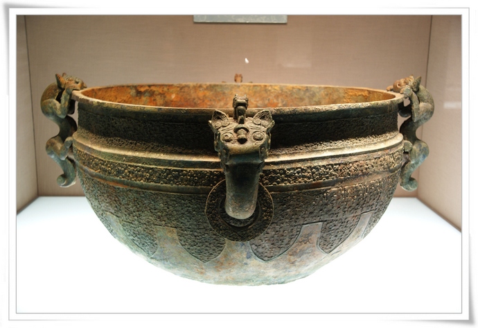 鼎:古代的烹饪之器,和现在家里的锅差不多,用来煮或盛放鱼、羊、豕肉。大多是圆腹、两耳、三足,也有四足的方鼎,比如有名的商代司母戊大方鼎。鼎,是中国古代最重要的青铜礼器之一,传说夏禹曾收九牧之金铸九鼎于荆山之下,以象征九州,并在上面镌刻魑魅魍魉的图形,让人们警惕,防止被其伤害。自从有了禹铸九鼎的传说,鼎就被视为传国重器、国家和权力的象征,所谓国灭则鼎迁,后世都把定都或建立王朝称为“定鼎”。