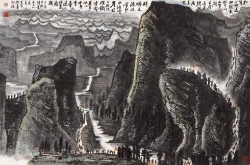 6,李可染的《长征》。2010年嘉德秋拍《长征——大师们的笔墨征途》专场中,李可染国画巨制《长征》以1.075亿元成交,创下了当时“红色经典”美术作品拍卖纪录。作于1959年的《长征》,是为纪念新中国成立十周年以毛主席诗词为题进行的大型创作初稿。画作中,红军队伍沿狭窄山路从左往右横越画面,画家成功地将毛主席诗词中的革命豪情与浪漫诗意视觉化。