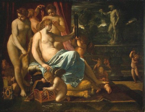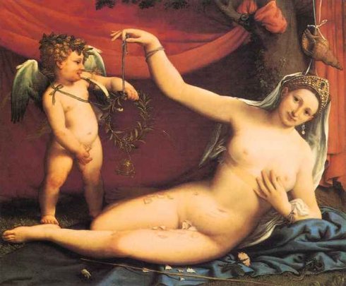 维纳斯和丘比特 洛兰佐•洛托意大利纽约大都会博物馆藏