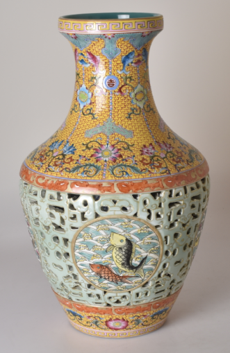 珐琅彩镂空鱼藻纹玲珑尊
