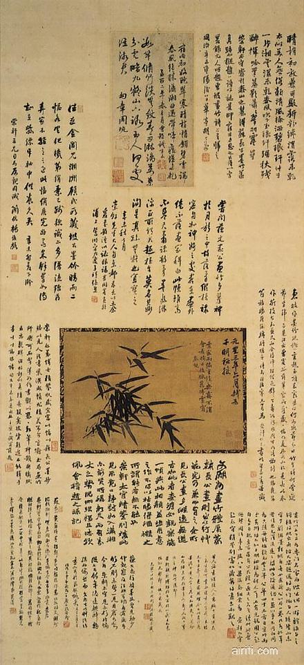 【收传】赵孟櫅印。仰不愧俯不作二乐也。宝藏。沉周宝玩。项元汴印。项子京家珍藏。项墨林父秘籍之印。天赖阁。珍秘。宜尔子孙。珍赏。吴廷。丹诚。都尉耿信公书画之章。信公真赏。绘侯珍藏。怡亲王宝。公。宣统御览之宝。