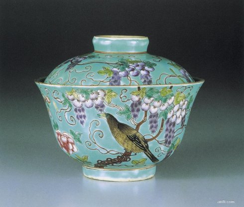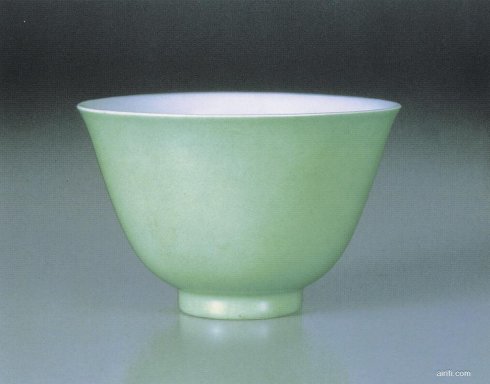 一般称此匀净淡绿微泛黄色者为吹绿,或形容其吹之可破的娇嫩感觉,或因其以吹釉枝法制成而得名。吹绿色正是雍正朝低温铜绿釉的代表釉色,多见于小品器类。