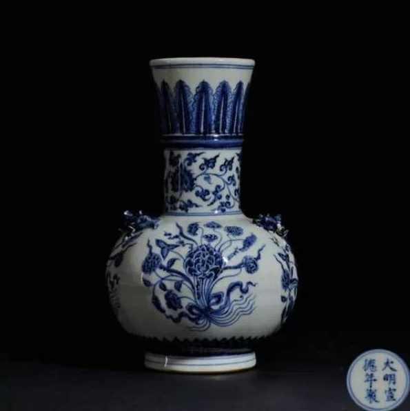 明代永乐年间,郑和七次下西洋从伊斯兰地区带回一批“苏尼勃青”料,这种青料含有高铁低锰,在适当的火候烧造下呈现出蓝宝石般的鲜艳色泽来,同时又因含铁高,在烧制过程中在青花上会出现黑斑点,平添了几分自然美,这也是永乐青花瓷器的一大特色。