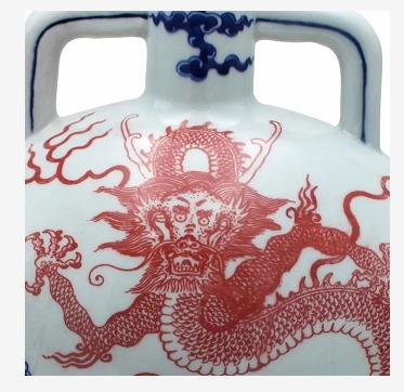 青花釉里红海水云龙纹抱月瓶,精品赏析