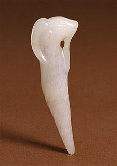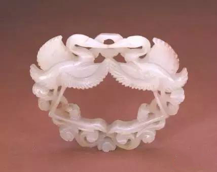 质似白玉,微带青色,鹤头相对,双鹤翅爪相接,作展翅欲飞状。上部有孔备穿系,知是佩饰。