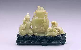 黄玉三羊尊,清,高14.2cm,口径7.6cm,底径6.8cm。