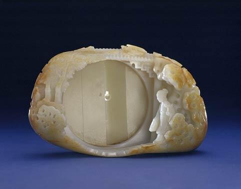 玉松阴听泉图山子,宋,长10.5cm,高9cm,厚4.5cm。清宫旧藏。