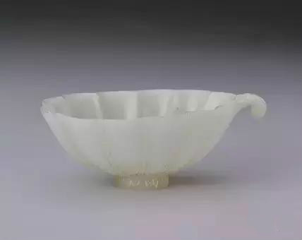 此杯造型为典型的痕都斯坦风格,以凝脂般的白玉雕为花叶状,于清丽素雅中又显出富贵之气,当是清代御用之饮酒器。