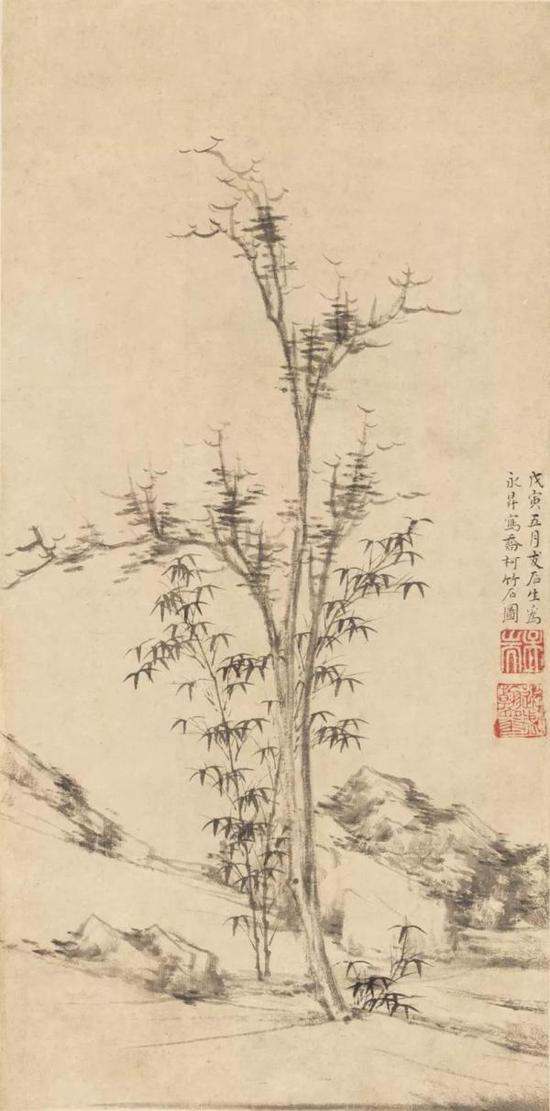 明 夏昶《戞玉秋声图轴》 纸本墨笔 纵151厘米 橫63.7厘米 上海博物馆藏