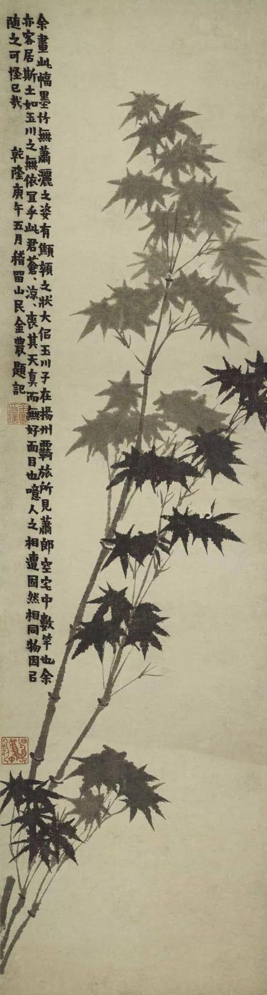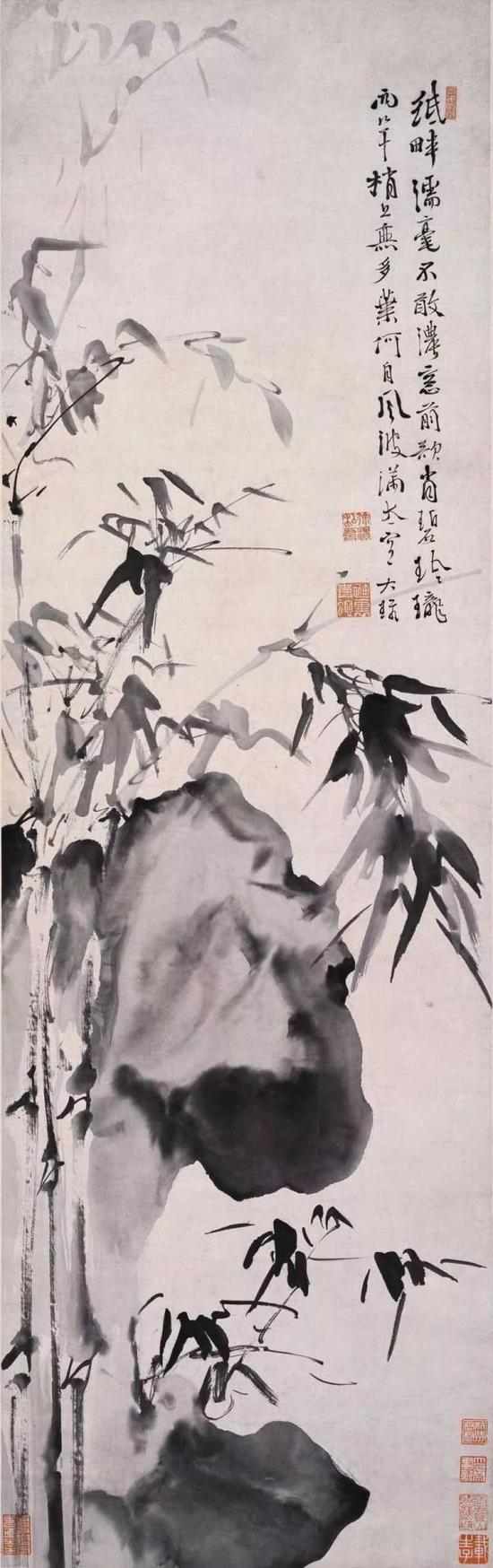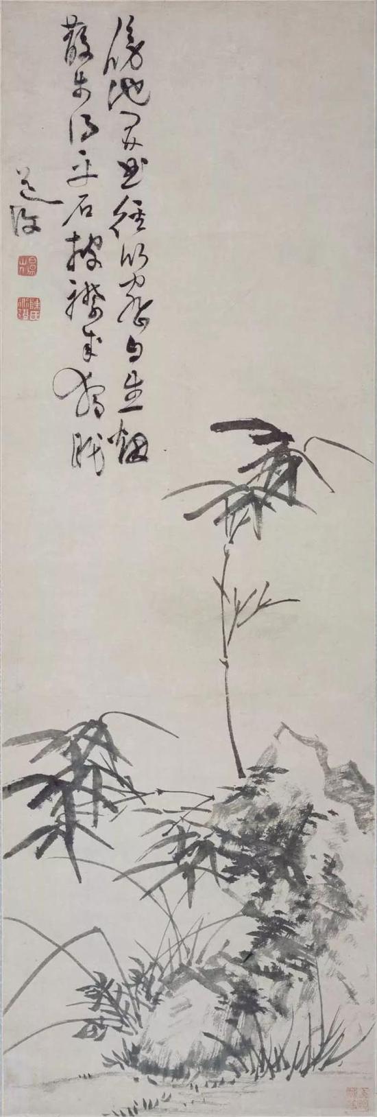文、苏墨竹一脉,至明代王绂、夏昶之后,陈芹、姚绶、文徵明等人,以形写神,追求适意舒和、端雅渊静之意,正所谓君子之气,劲而不怒,逸而不散。同时又能兼备竹之法度神采,是文苏一脉正统的传承者。传承是艺术得以延续的根本,但是它更感人的一面乃是其绝世而独立的精神,是其郁郁勃发、生生不息的生命状态。明代的陈淳、徐渭,清代的朱耷、石涛、金农、郑燮,他们脱宋元墨竹之形貌,每每放浪形骸,不求形似,笔墨跌宕而摄人心魂。这些纵逸之笔,是画家心灵乃至生命的物化,虽然与文同的墨竹在表现上拉开了很多距离,但在本质上,是在文苏一脉所提倡直抒胸意的思想影响下而演变的一种艺术形态,是对“不求形似”、“寓人于竹”、“画以适吾意”等观念的认同与发展。其思想实质与文苏一脉无异。