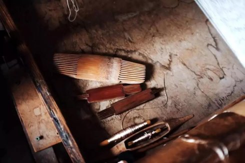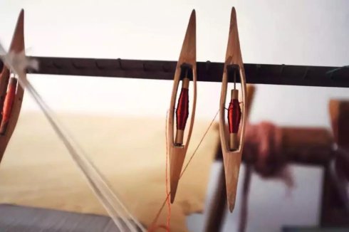 既说缂丝必然用丝——真丝,通常以较细的生蚕丝为经线(竖向),这也是缂丝成品显出挺括质感的原因之一,而以柔软的彩色熟蚕丝为纬线(横向),表现丰富的图案色彩。缂丝织造时,需要借助古老的平纹木机、不同规格的梭子、拨子等竹木工具。