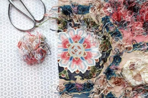 修剪多余线头的缂丝花带