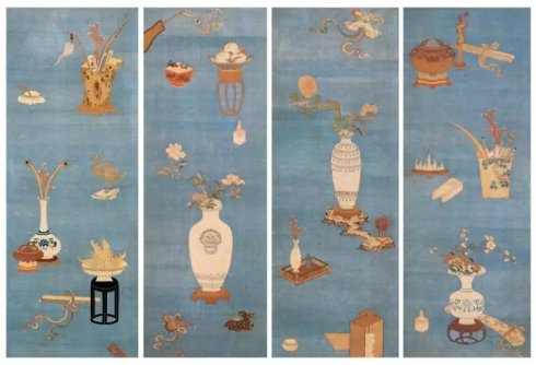 清中期 缂丝博古图四条屏