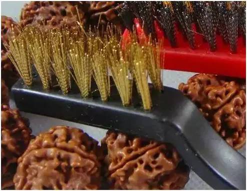 大多数的玩友在刷金刚菩提的时候都会选择用鬃毛的刷子,用起来是非常好用的,而且性价比高。可以选择短毛和长毛的两种,别买黑色的,要天然没有经过染色的。这种刷子清理核桃纹路的污垢是非常适合的。