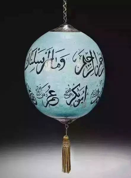 19世纪土耳其艺术 绿松石悬挂装饰,表面书写土耳其文字▼