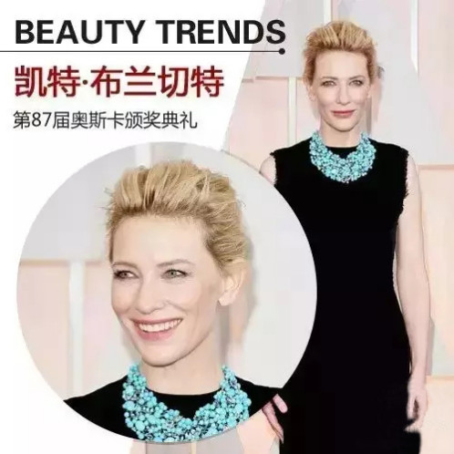 2015年奥斯卡,“女王”专业户的凯特·布兰切特,佩戴高级绿松石项链,宛若女神降临▼
