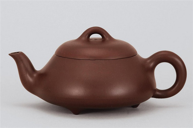 总体来说,石瓢壶都具有以下共同特点:壶身呈梯形,曲线柔和流畅,造型浑厚朴拙;钉足呈三角鼎立状支撑,给人以轻灵而稳重之感。壶嘴简洁见力度、壶把多呈倒三角势,与壶身之型互补,形成和谐的美学效果;平压盖及桥钮干净利索、比例恰当,充分体现出秀巧精工为上的特点。