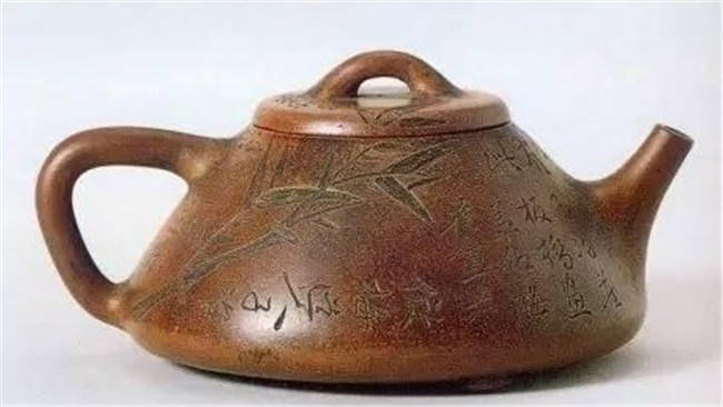 石瓢壶的起源,还得从一个故事说起:据传,陈曼生在就任溧阳知县时,经常微服简从、漫游于市井之间。有一次遇到一个乞丐拿一石器行乞于街角,曼生见那石器造型独特、外观古朴,便将其买下;如获至宝的陈曼生根据那石器的形状加以改进、历经多次修改,最终做成石瓢壶、并在上面题上“不肥而坚 是以永年”的壶茗,流传至今。