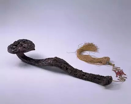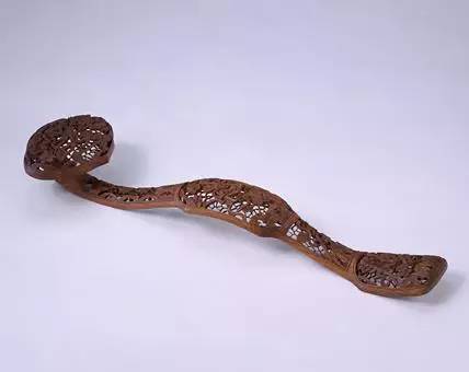 此如意以天然木根略作加工,打磨光润,形态自然优美。清代早中期,宫廷中对古朴淡雅、造型精美的竹、木质如意十分推崇,殿堂、书斋中的如意以竹木质居多。乾隆咏如意的御制诗中,仅写竹、木如意的诗就有15首之多。