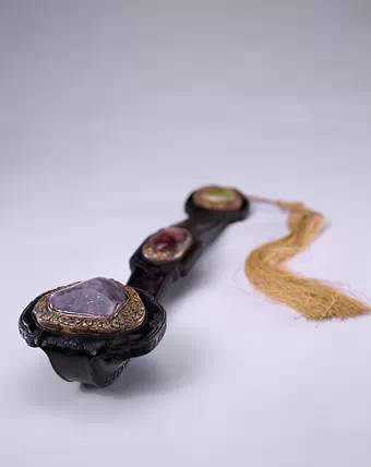 紫檀木嵌宝石花卉三镶如意 长51.1cm