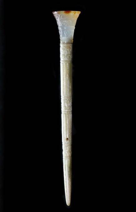 “笄”是古人用来绾定发髻的长针。从周代起,满15岁,古代女子就被看作成人,如果已经许嫁,便可梳成人的发髻了,这时就需要使用发笄。古时称女子成年为“及笄”就是这个意思。