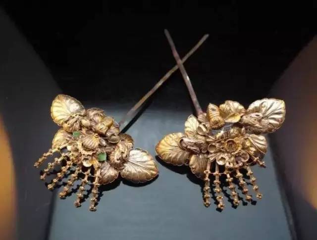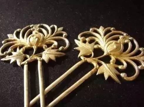 发钗是由两股簪子交叉组合成的一种首饰。隋代发钗作双股形,有的一股长一股短,以利方便插戴,中晚唐以后,安插发髻的发钗钗首花饰简单,另有专供装饰用的发钗,钗首花饰近于鬓花。