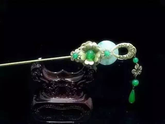 簪为单股,由笄发展而来,在笄顶雕刻纹饰或玉石等装饰。常见的纹饰有祥禽瑞兽、花卉果木、人物神仙、吉祥符号等,这些装饰反应了中国文化的传统寓意及艺术,处处体现出浓郁的中国文化情结,渗透着传统文化意趣。