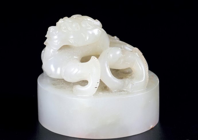 清嘉庆 白玉瑞兽钮宝玺「富春楼」3.9×2.6cm;高5.7cm 5,290,000 RMB