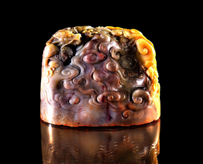 清乾隆 昌化鸡血石苍龙教子钮宝玺“敬胜怠”