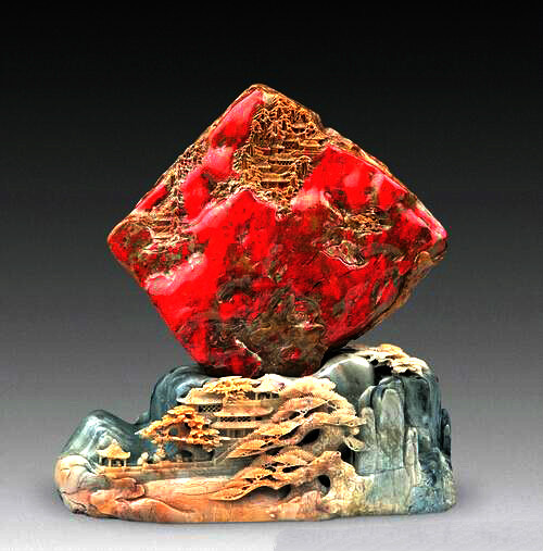 在众多印石中,昌化鸡血石是中国“印石三宝”之一,并以撩人的美姿,赢得“印石皇后”之誉,为中国印文化的发展作出了独特的贡献,同时又为我国的玉雕工艺创造了“鸡血”巧雕的独特流派。